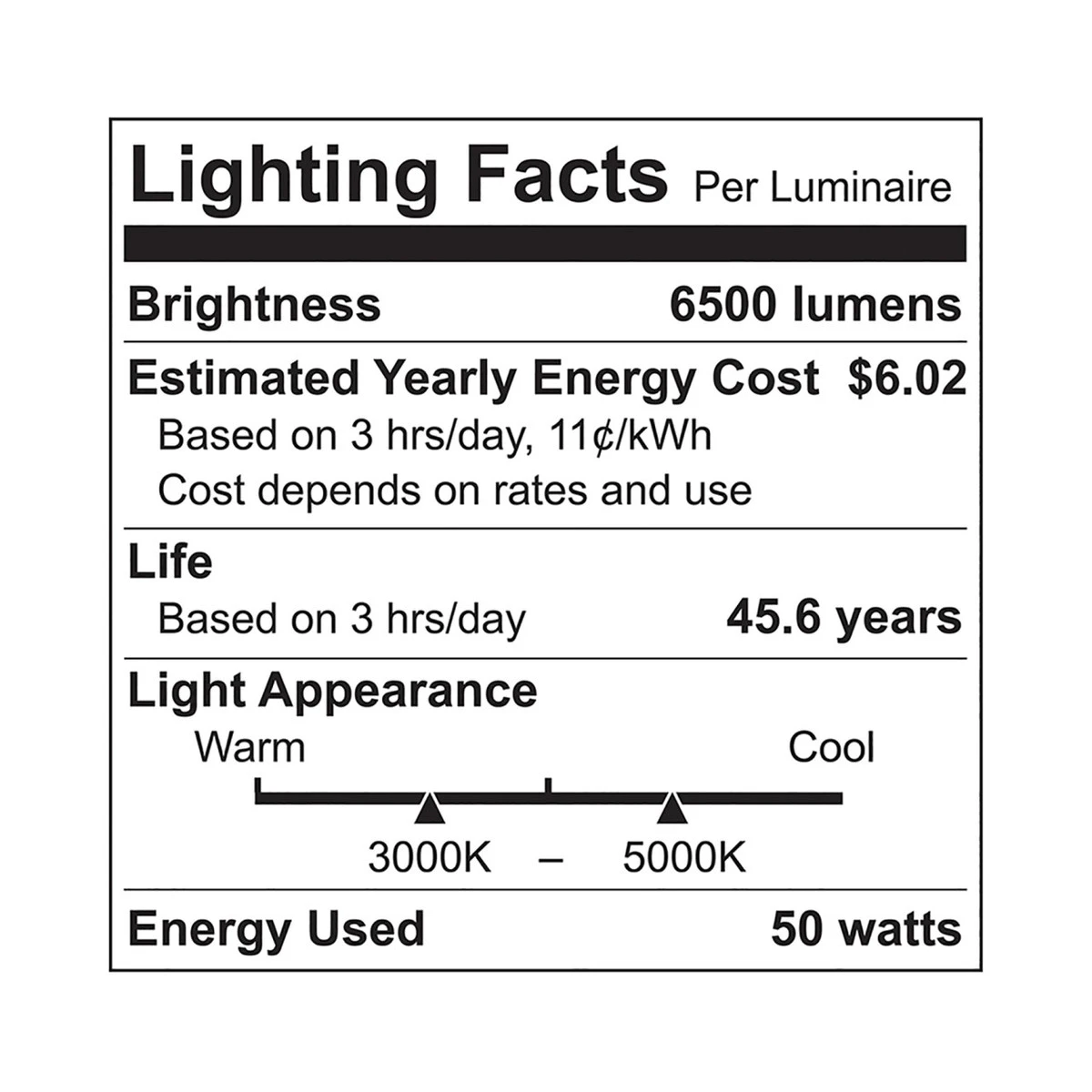 | Luminous Efficacy | 130 lm/w |
