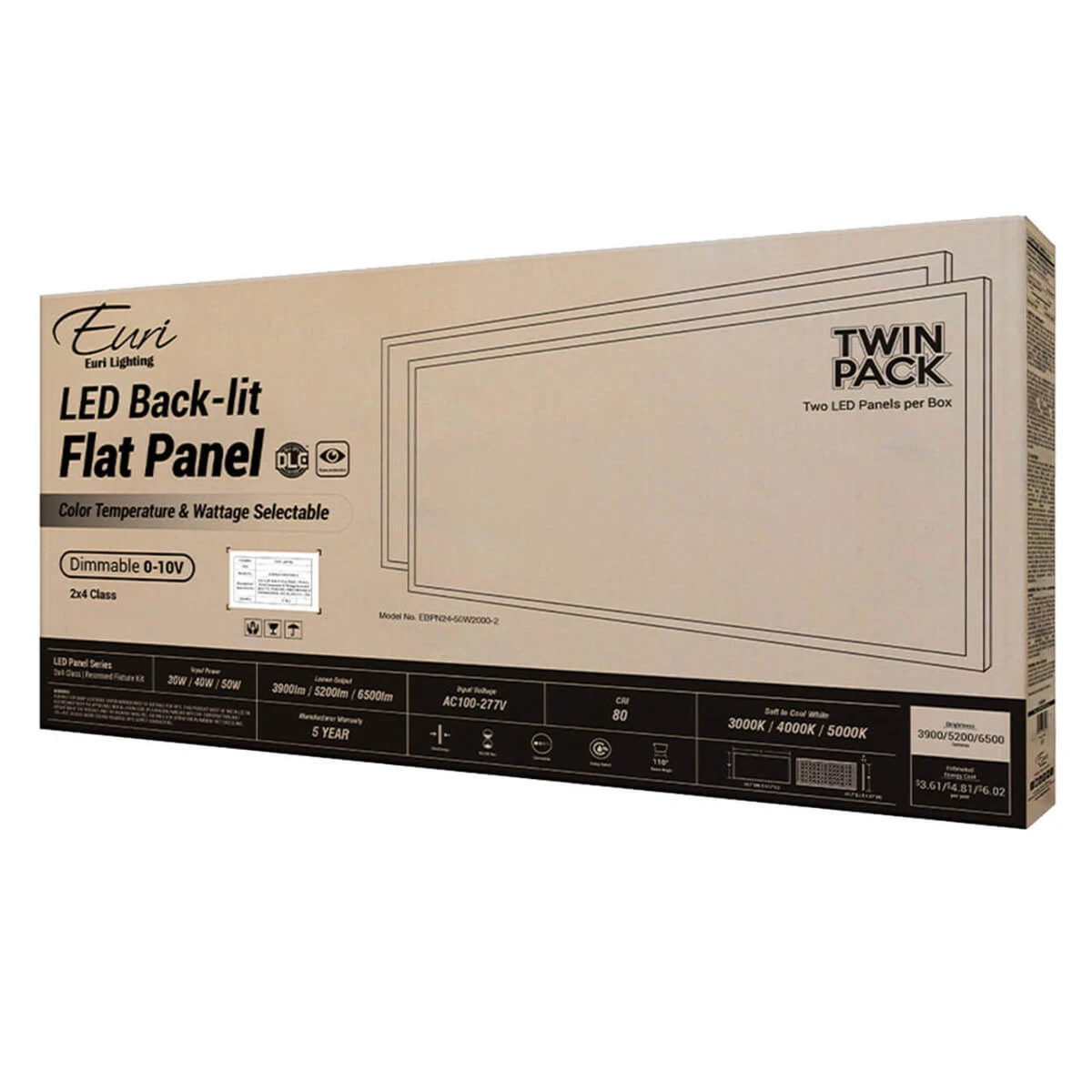 This powerful 2ft. x 4ft. Wattage Adjustable & Color Tunable LED Backlit Flat Panel by Euri Lighting is what you have been searching for. This LED flat panel light would work great for offices or other commercial and industrial applications. It is wattage and color adjustable to fit the needs of the environment being installed into. These features are only just the tip of the iceberg as this panel also boasts being dimmable, damp rated, and comes in a two pack to double your energy savings.