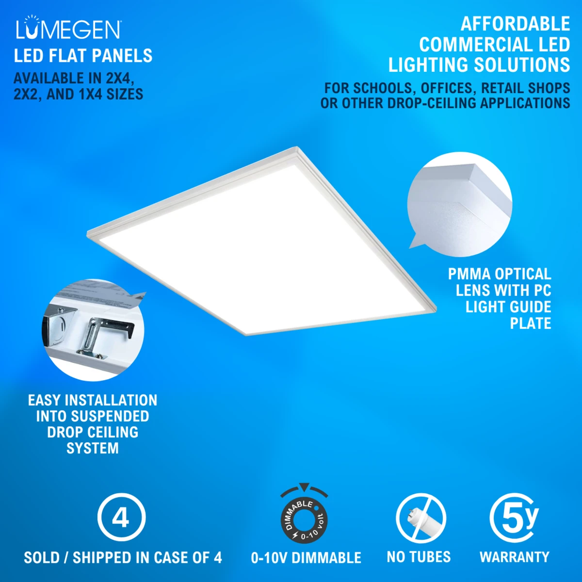 This LED panel light is 30W at 125 lumens per watt produces 4000 lumens. It come standard with a LED dimmable driver with a 0-10V dimmer. It comes in flicker-free Cool White (3500K), Bright White (4000K) or Daylight (5000K).