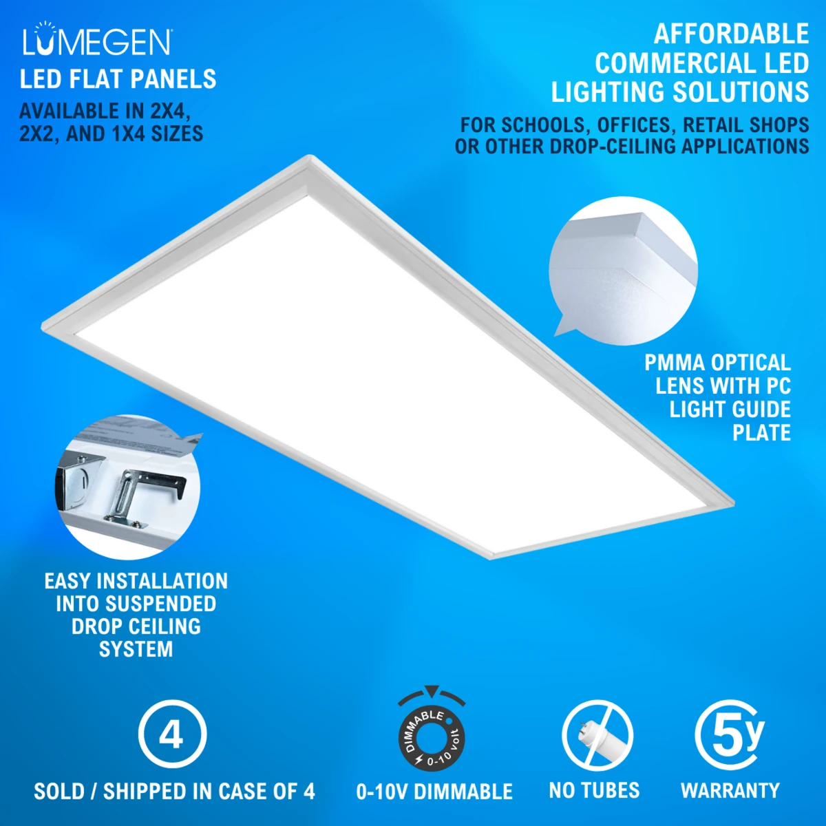 This 2×4 LED Backlit Flat Panel is the perfect replacement for fluorescent troffers used in drop ceilings. Designed to fit in a conventional suspended grid ceilings for new construction or retrofit projects, LED flat panels will save you time and money. Perfect for areas where you need bright, even light such as schools, universities, offices, churches, game rooms and restaurants.