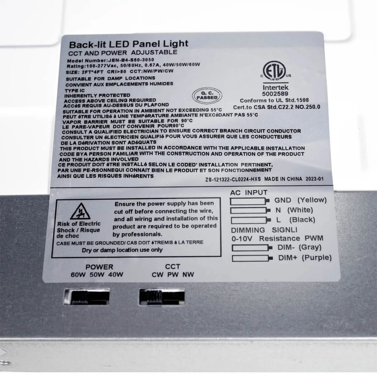 In addition to being wattage selectable, this LED panel light is also color tunable allowing you to select between 4000K, 5000K and 6500K. With all of the different configurations available in this one light, it is extremely versatile to many different applications or customer preferences.