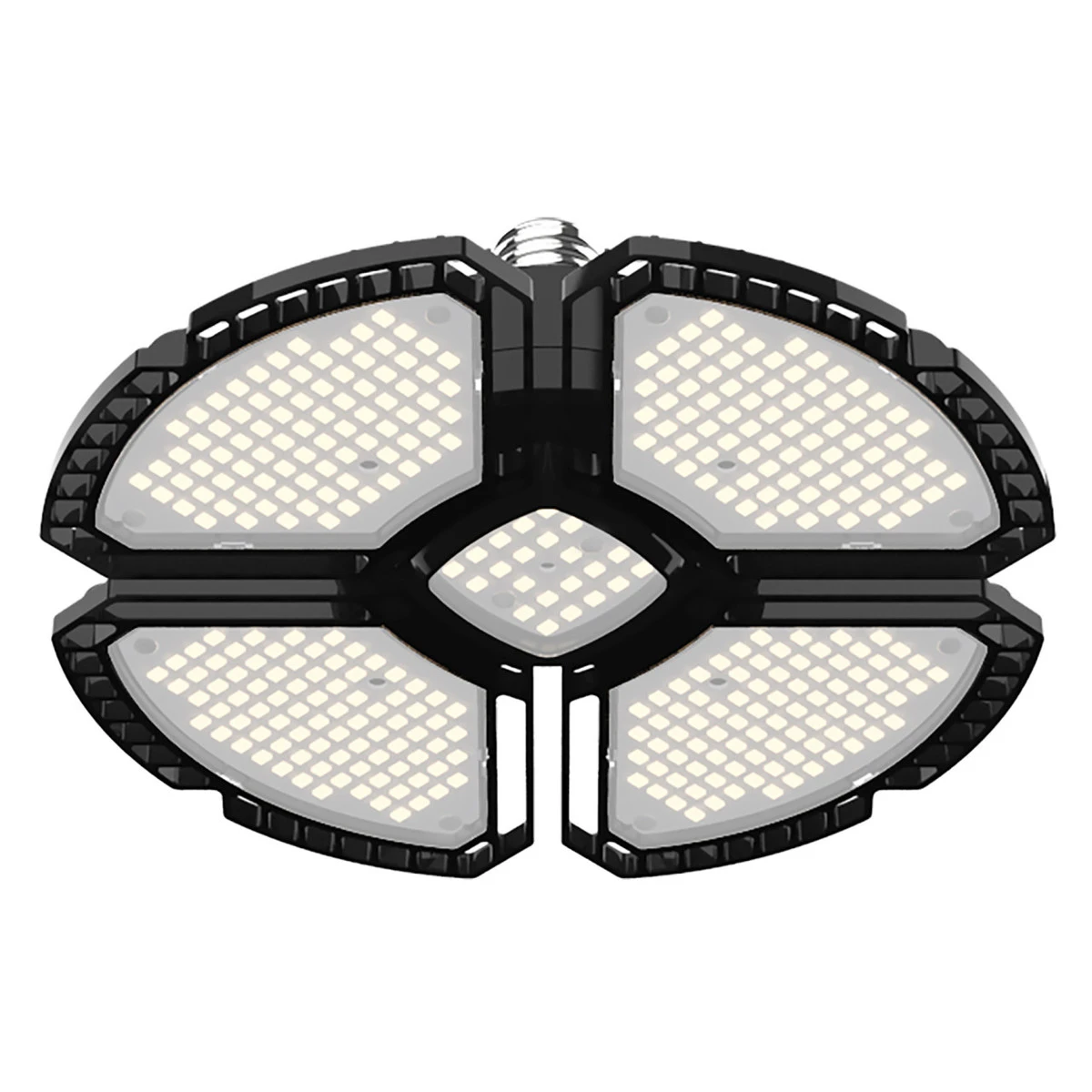 This version of LED Adjustable Garage Bulb also includes LEDs on the bottom of the light to provide even more down lighting compared to other versions of this type of light. The LEDs on the bottom allow down lighting while the panels are folded upwards.