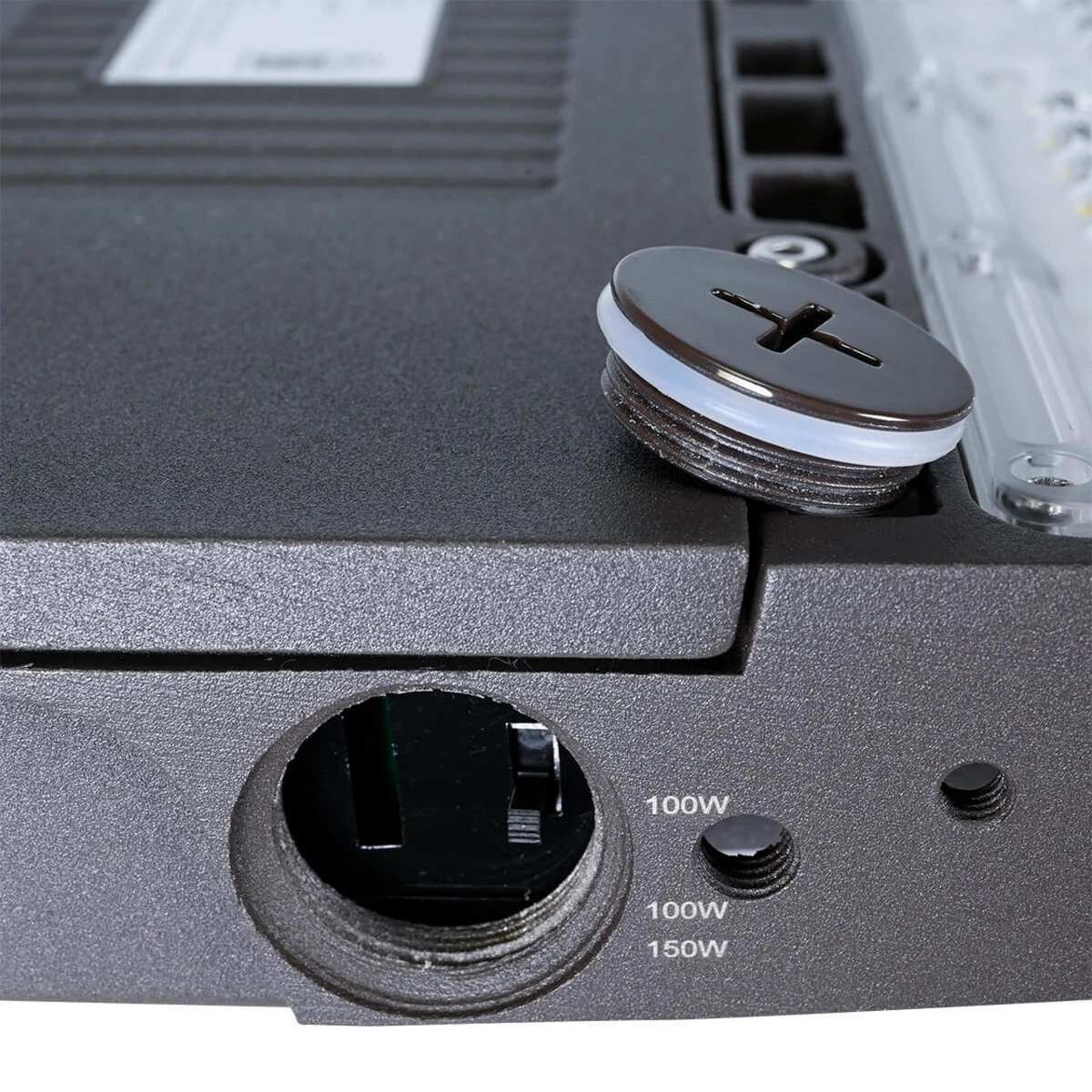 At 130 lumens per watt, this Wattage Selectable LED area light produces up to 19,500 lumens when operating at the highest wattage of 150W. It produces approximately 13,000 lumens at 100W setting.