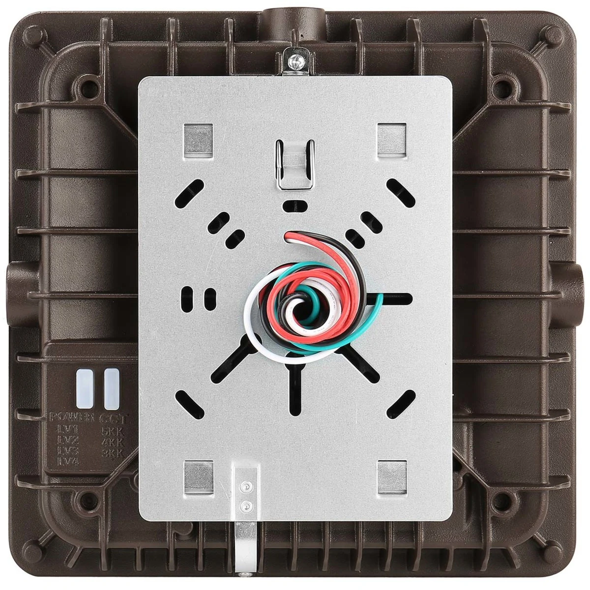 There are notable optics and electrical components of this canopy light including its 70 CRI, being wattage adjustable and color tunable, and being 0-10V dimming. Its parking garage photometry and polycarbonate anti-UV prismatic translucent lens also provides a wide light distribution and greater uniformity. This light boasts universal 120-277VAC input voltage and an operating temperature ranging from -40°C/-40°F to 40°C/104°F.