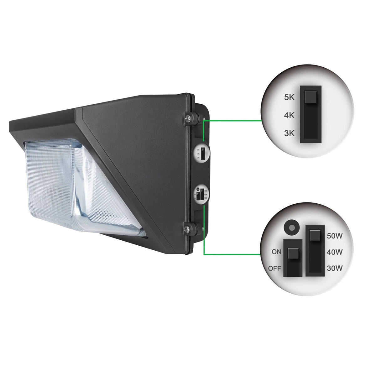 This LED Outdoor Wall Pack boasts three different wattages and three different color temperatures making it 9 fixtures in 1!