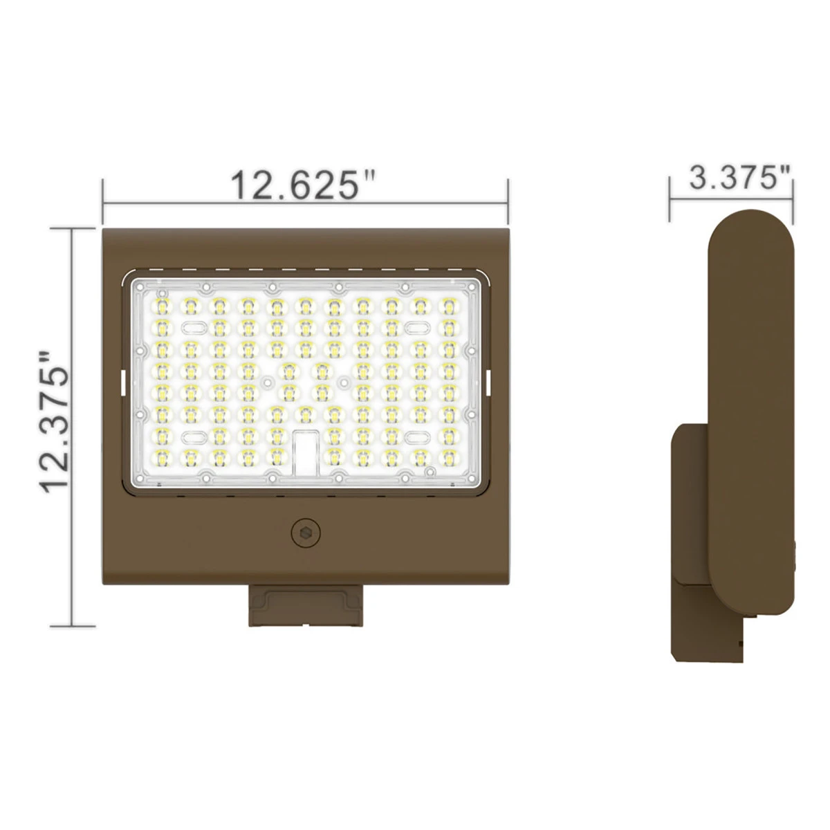 This LED area light has an aluminum housing with a dark brown powder coated finish. It is IP65 rated meaning it is dust-tight and can withstand direct water spray. The lens is heat-resistant PC lens with anti-UV coating. It includes a Type III lens meaning it cast a light pattern roughly 2.75 times wider than the mounting height making it perfect for roadways and parking lot aisles.