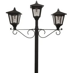 Solar LED Triple-Head Solar Lamp With Post Set And Planter – 90 Lumens – Black Finish – Gama Sonic