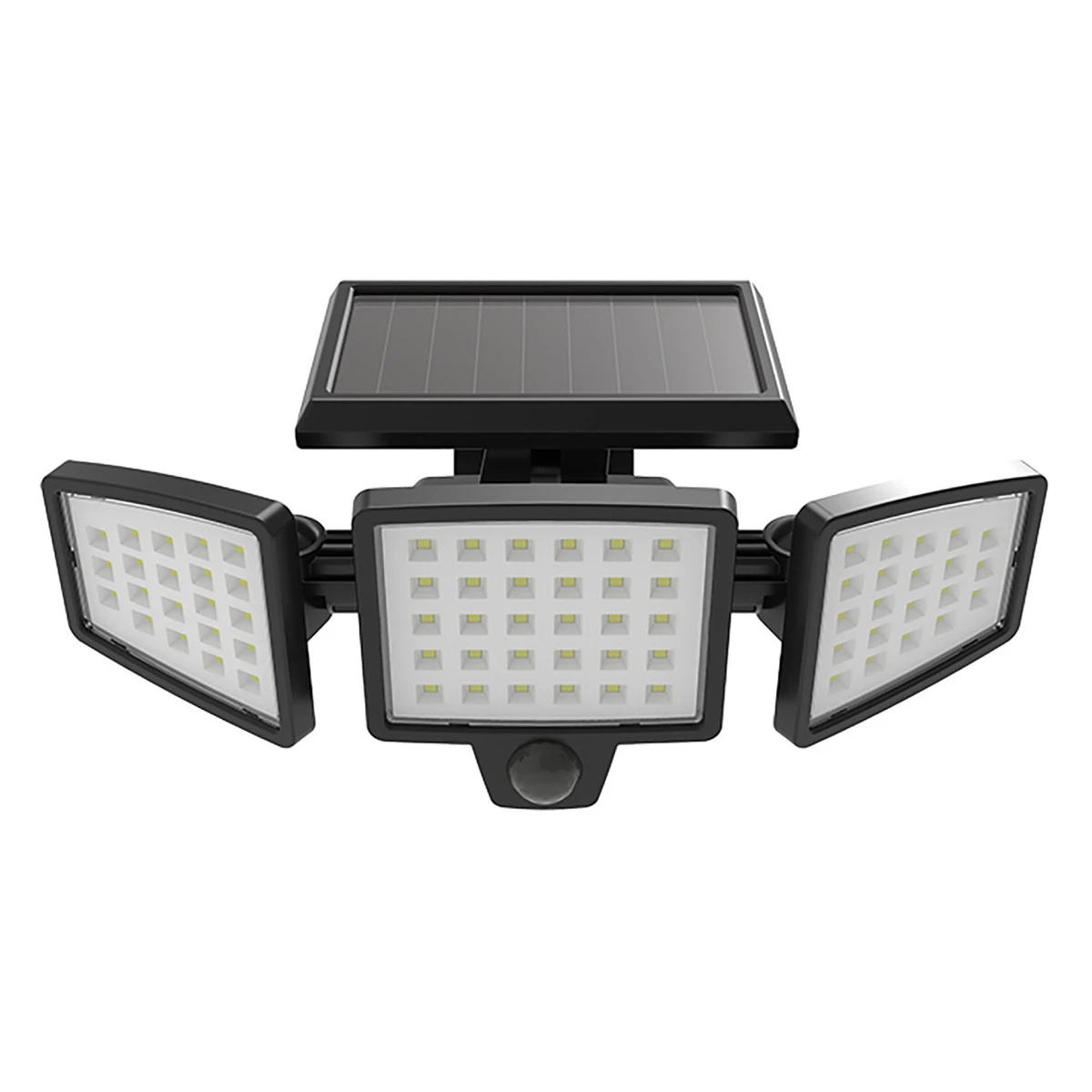Easily add security lighting to any outdoor area with this Solar Tri-Head solar Security Light with motion sensor. Perfect for any outdoor areas with direct exposure to sunlight such as building perimeters, sheds, barns, fence-lines, and many more areas. The light works by charging the batteries during the day with exposure to sunlight and activates at night when it detects motion. With no wiring involved, this fixture is very easy and quick to install.