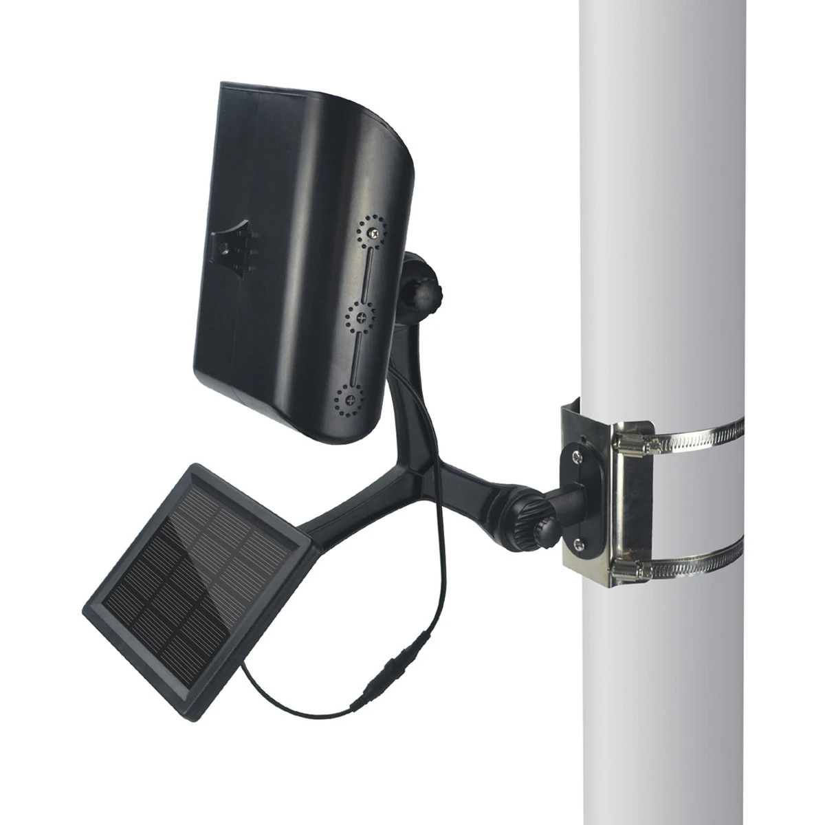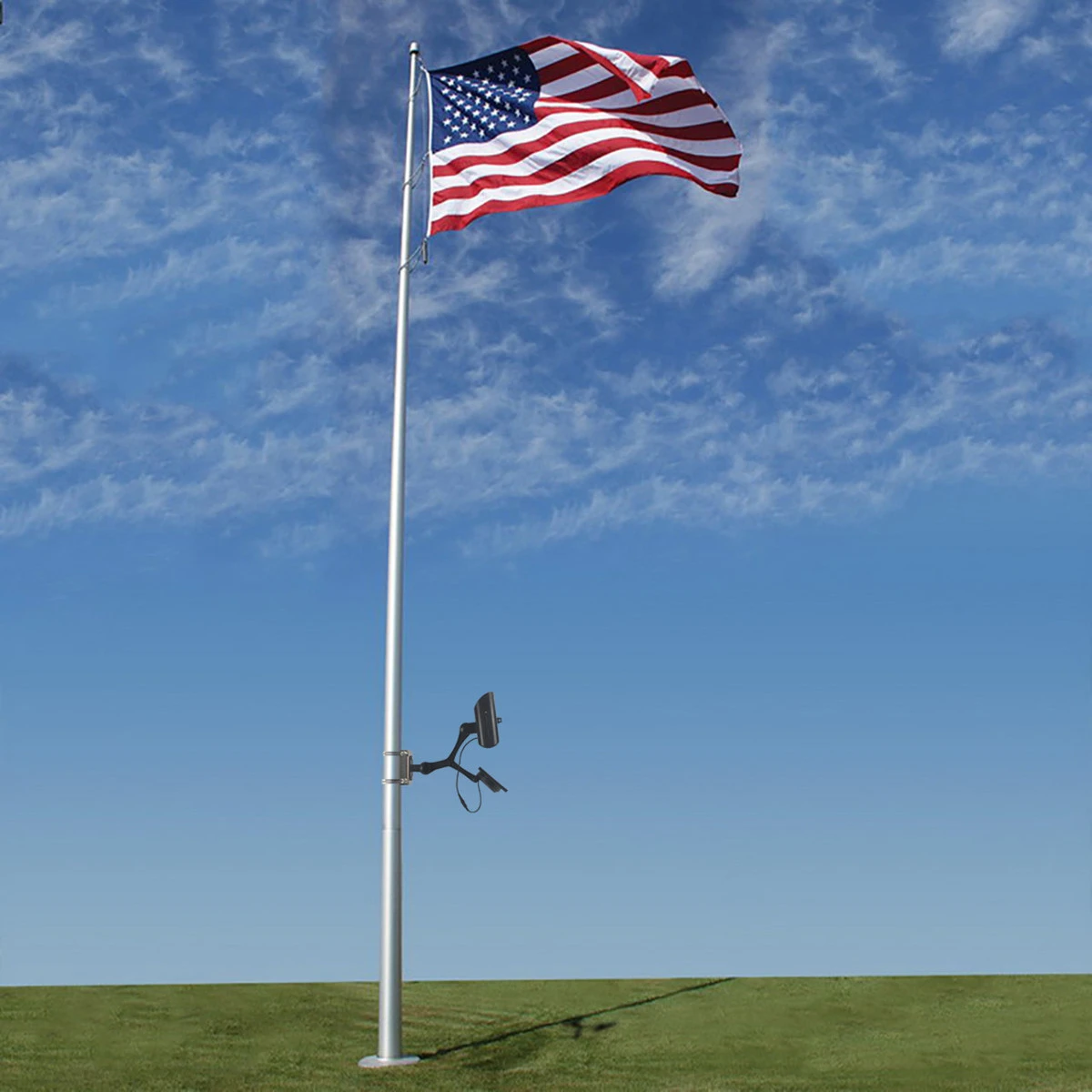 The Solar Flagpole Light converts sunlight into energy to power this light at night without the need for electrical wiring! This LED light charges during the day allowing the light up to 12 hours of runtime at night with a max output of 360 lumens. Installation is a breeze and can be installed anywhere along a flagpole. The light and solar panel are both independently adjustable to adjust up to 180-degrees for optimal illumination for the light and sun light absorption for the solar panel.
