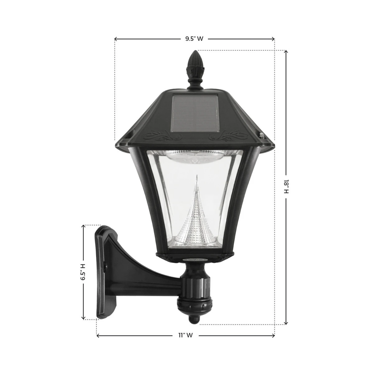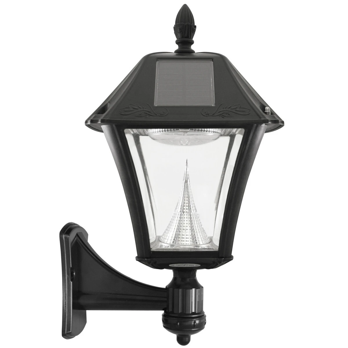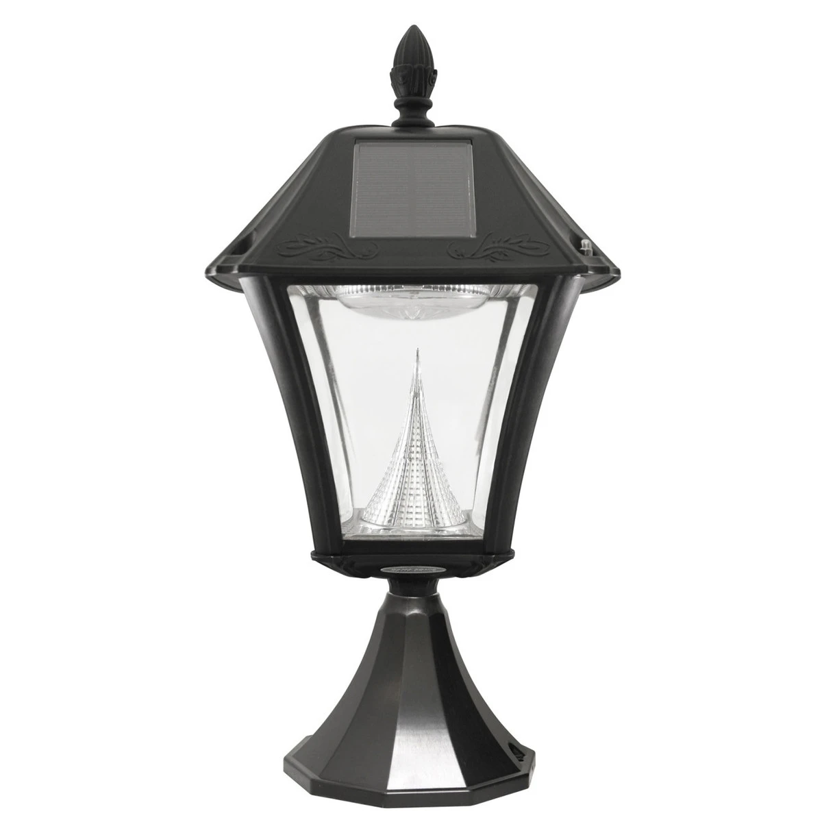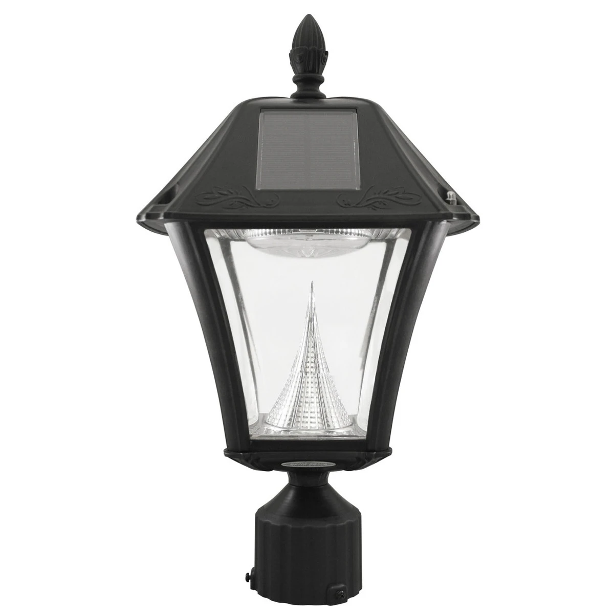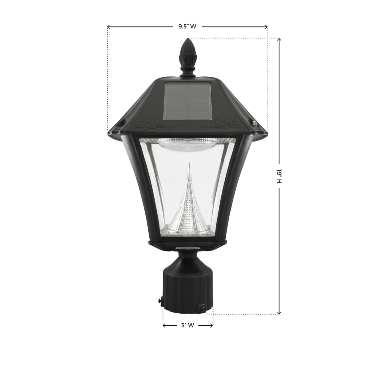 The Gama Sonic Baytown II Solar LED outdoor light fixture is an energy-saving and money-saving replacement for electric or gas-powered outdoor lighting. This solar lantern makes a stylish addition to your home’s exterior. This solar lamp comes with 10 LEDs and Gama Sonic’s cone reflector which helps disperse the light more efficiently. The Wall/Pier/3″ Fitter Mounts selection comes with three different mounting options and can be placed on any 3-inch outside diameter pole, 3-inch pier/flat base or mounted to the wall. The Lamp Post (Included) selection includes an EZ Anchor lamp post.