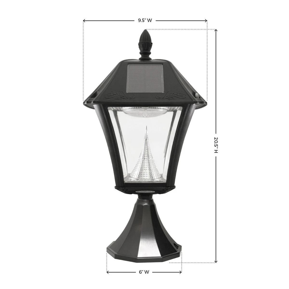 - Pier Mount Light Dimensions – 9.5″ W x 6″ L x 20.5″ H