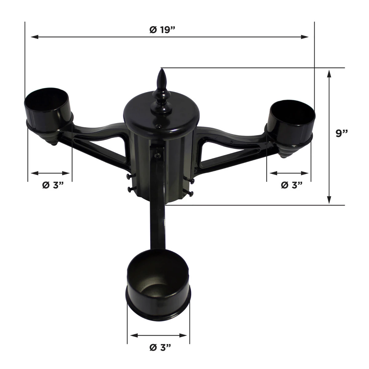 With the Triple Heads Bracket Kit with 3-Inch Fitter, you can mount three solar lamp heads together onto one lamp post. The cast aluminum hardware has a long-lasting gloss black finish that matches many of our lamp heads. With no wiring required, this triple heads bracket is super easy to install. It quickly converts any 3-inch-diameter lamppost from a single- to a triple-headed lamp.